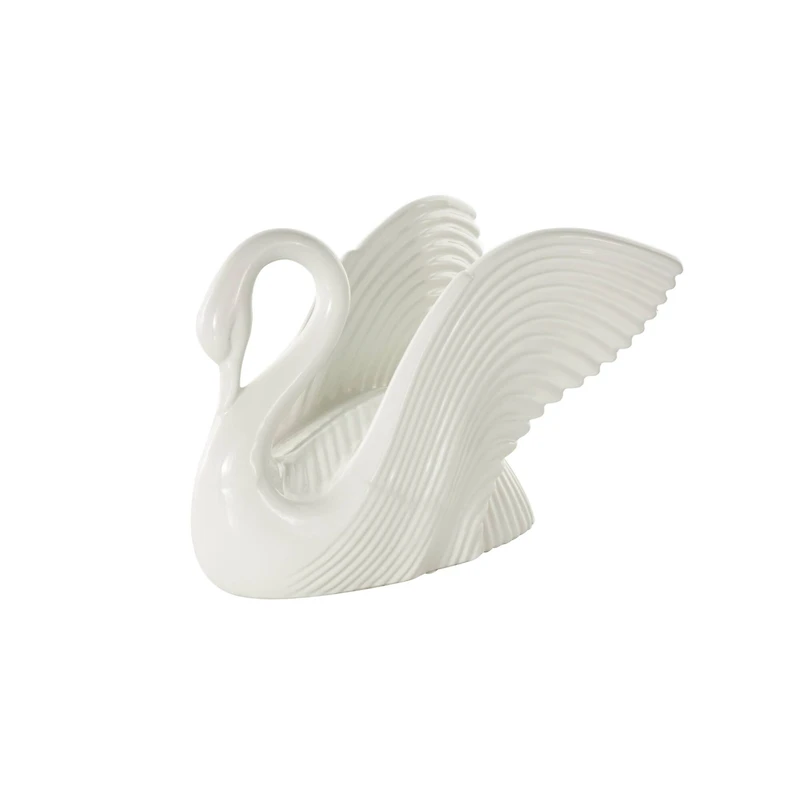 Infuse your home with cozy charm, where weathered textures, rustic finishes, and warm earthy tones create a wholesome atmosphere. A modern sculpture that is made of molded high-quality ceramic, making it both durable and long-lasting. A swan sculpture with a touch of sophistication and timeless beauty to its design. This swan sculpture embodies an exceptional level of detail, skillfully capturing the swan's intricate lifelike beauty and graceful elegance. Display this white sculpture by placing it on a tabletop or shelf to add playful energy to your space. Designed with felt or rubber stoppers at the base that prevent scratching furniture and table tops, as well as sliding around. Ceramic sculpture makes a great gift for any occasion.Details:Available in multiple colors10.55" x 6.95" x 7.5"2.785 lb.Includes rubber or felt stoppers on baseFor decorative use only.Suitable for indoor use only