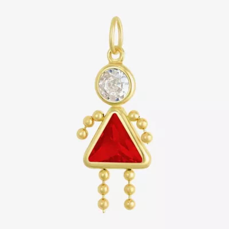 This July birthstone baby girl charm is the perfect gift for a mother to treasure her new arrival. Crafted from 10K Yellow Gold, this boy-shaped charm features a bezel set Cubic Zirconia for the head and 1 Simulated Ruby for the dress. Wear it on a chain necklace or bracelet.