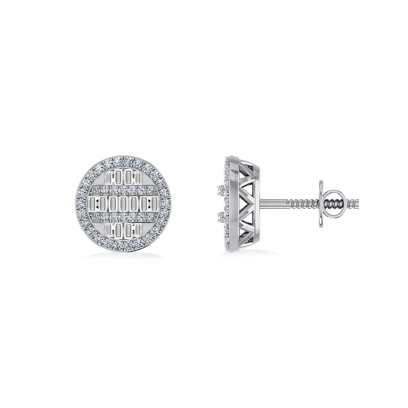 10K Gold Round Baguette Diamond Designer Mens Stud Earring 3/8 Cttw