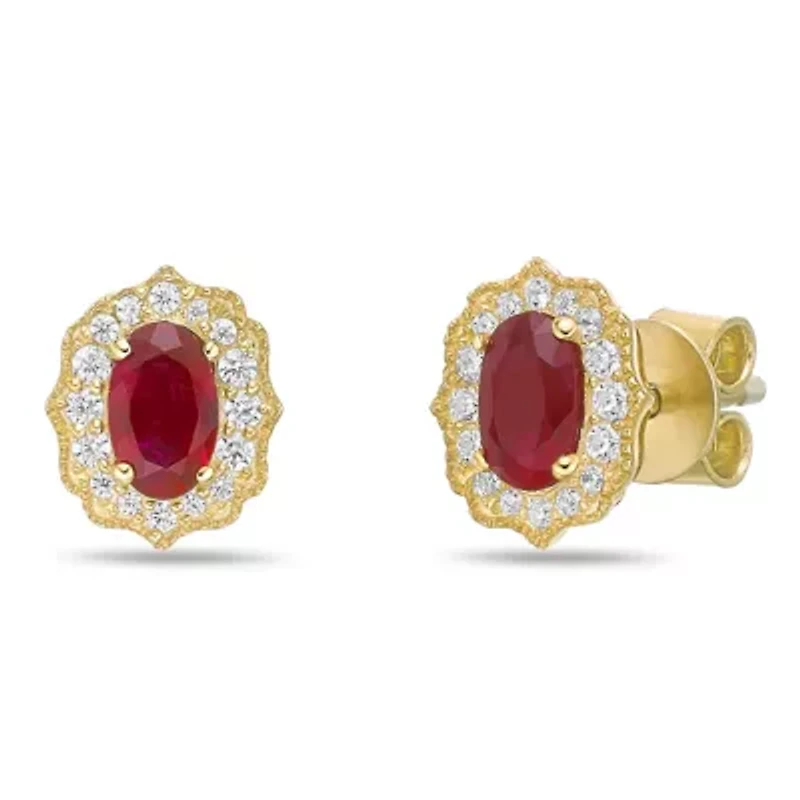 10K Gold Ruby and 1/8 ct. t.w. Diamond Stud Earrings in Chattanooga, TN