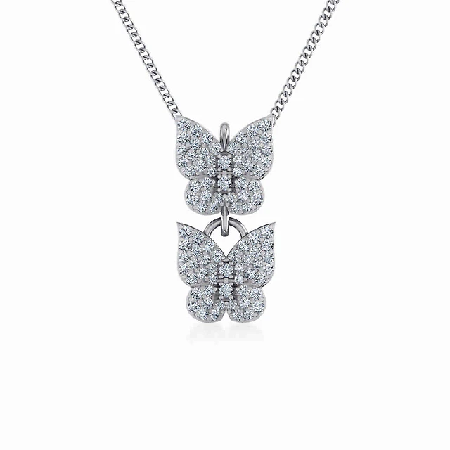 10K White Gold Womens Round Diamond Butterfly Cluster Top Open Pendant 1/4 Cttw