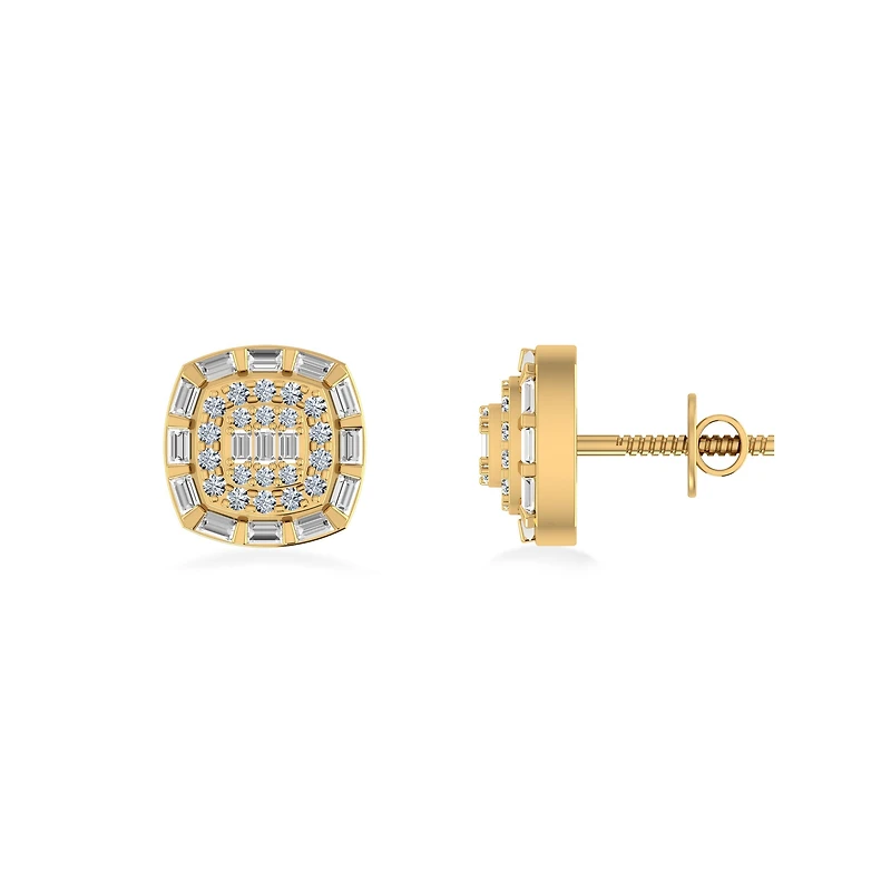 10K Yellow Gold Round Baguette Diamond Square Designer Earring 1/2 Cttw10K Yellow Gold Round Baguette Diamond Square Designer Earring 1/2 Cttw10K Yellow Gold Round Baguette Diamond Square Designer Earring 1/2 Cttw