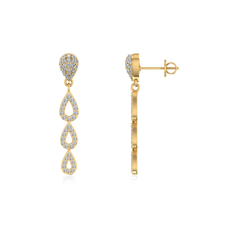 10K Yellow Gold Round Diamond Drop Shape Dangling Earrings 3/4 Cttw