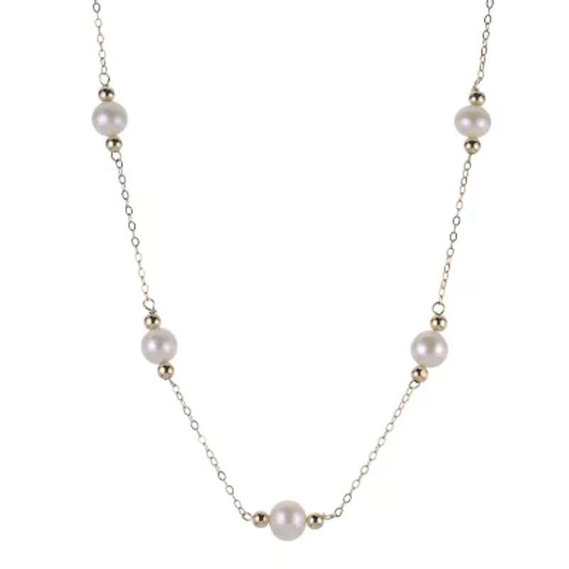 Capture the soft glow of romance with this exquisite “tin cup” style necklace. This 10k yellow gold necklace features stationed 6-6.5mm cultured freshwater pearls and polished beads on a delicate 18-inch chain. A timeless staple designed to add a refined shimmer to your favorite outfits. Lobster closure Polished finish Imported Product Specifications 0.0000 Material & Care Metal, Gold Clean with a soft cloth.