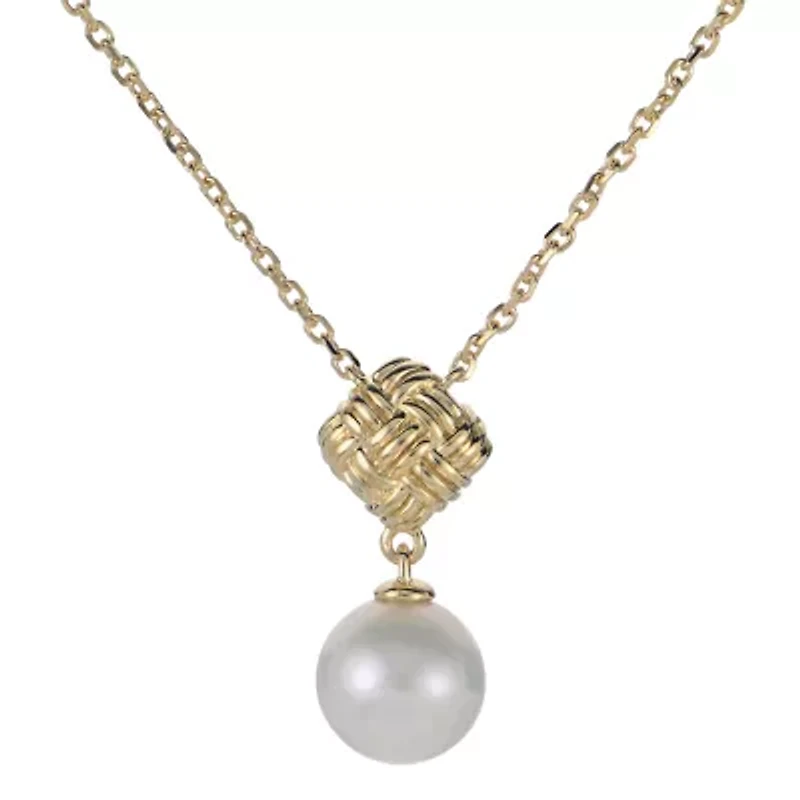 Warm and detailed, this adjustable 10K yellow gold drop necklace features a luminous 8-8.5mm off-round cultured freshwater pearls suspended beneath an intricately woven design. The textured gold enhances each pearl’s natural luster for an elegant, artisanal finish. Lobster closure Polished finish Imported Product Specifications 0.0000 Material & Care Metal, Gold Clean with a soft cloth.