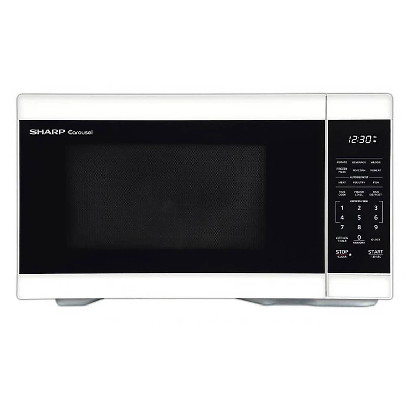 The Sharp Mid-Size, 1.1 cu. ft., 1000 Watt Microwave Oven in Black takes up less space on your countertop and is our smallest oven for a full-size dinner plate.The SMC1161KW is packed with thoughtful and innovative features. Convenient preset buttons make cooking and reheating favorite foods and beverages a breeze. Express Cook offers One-Touch cooking for up to six minutes. The +30 keys can be used for an instant start and to add time during cooking.Easy-to-clean White finish with stylish gray interior, and LED light complement your style. The 12.4 in., dishwasher-safe glassplate of the Carousel® turntable system makes cleanup easy. The White LED display is bright and easy-to-read. Now that is Simply Better Living.With decades of experience designing innovative cooking appliances, it's easy to see why home cooks throughout the world trust Sharp Carousel. Convenient Innovation The SMC1161KW is packed with thoughtful and innovative features. Convenient preset buttons make cooking and reheating favorite foods and beverages a breeze. Express Cook offers one-touch cooking for up to six minutes. The +30 key can be used for an instant start and to add time during cooking. Built to Fit Your Needs The powerful 1000 watts in the SMC1161KW give you rapid reheating and fast cooking. The easy-to-clean, sleek black finish complements your style. Easy-to-use Preset Buttons, Auto Defrost, and the 12.4" Carousel® turntable system keep heating and reheating a breeze. Quick and Accurate Defrosting Takes the guesswork out of thawing most foods including meat, poultry and fish by regulating the power to accurately and automatically defrost by time or weight.