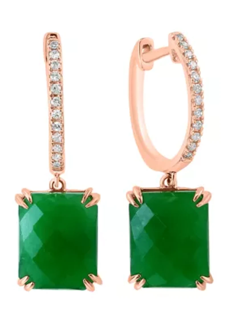 Emanating an allure of elegance and sophistication, these stunning 14K Rose Gold earrings from Effy® showcase two beautiful jade stones and are embellished with glittering diamonds for a lovely finish. 24 Diamonds, 2 Jade stones Hinge post earring Color rating: H, I Clarity rating: I1 I2 Prong setting Lifetime limited liability warranty Imported Product Specifications 1.03'' L x 0.33'' W x 0.24'' H 1/10 ct. t.w. Diamond, 8.8 ct. t.w. Jade Material & Care 14K Rose Gold Clean with a soft cloth