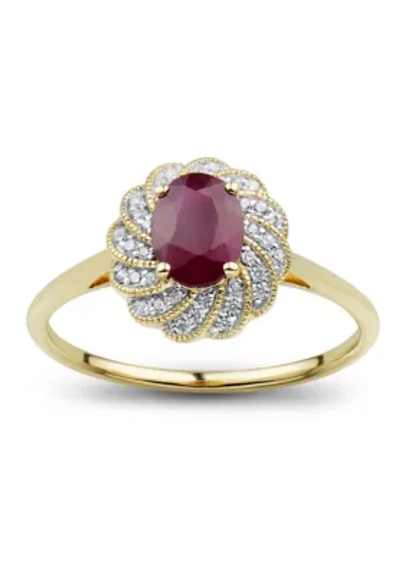1/10 ct. t.w. Diamond and Ruby Ring in 14K Yellow Gold