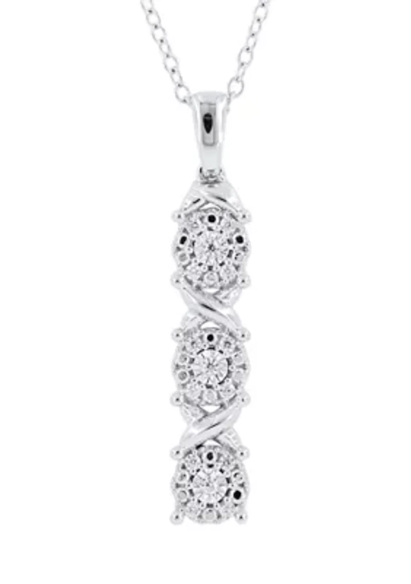 Hanging from a sterling silver cable chain, this Belk & Co. pendant necklace beautifully shimmers and shines with 15 round-cut diamonds. 15 Diamonds Spring ring clasp Color rating: I Clarity rating: I3 Polished finish Imported Belk Exclusive Product Specifications 18 in Length 1/10 ct. t.w. diamond Material & Care Sterling silver Clean with a soft cloth