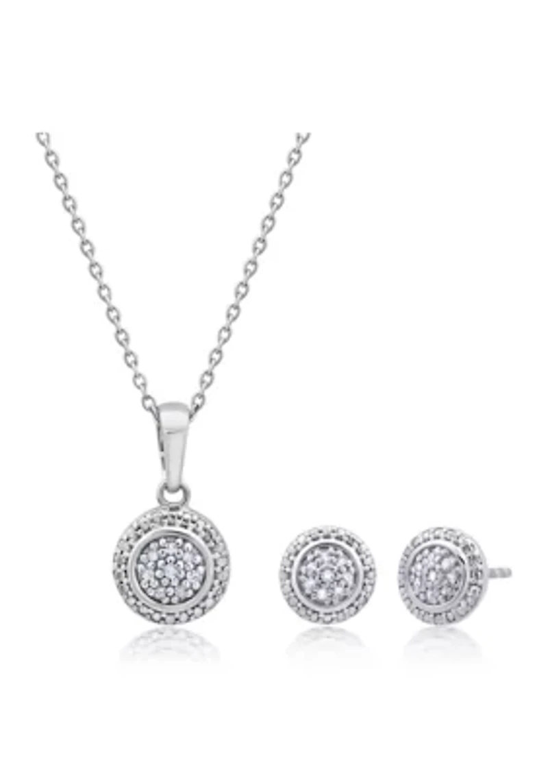 1/10 ct. t.w. Diamond Round Pendant Necklace and Stud Earrings Set in Sterling Silver
