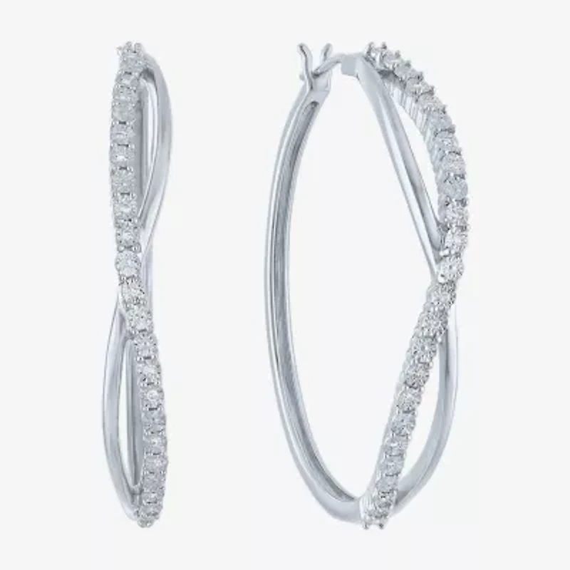 Add subtle sparkle to your style with these sterling silver hoop earrings. Dazzling brightly with 32 Lab-Grown diamonds, they effortlessly enhance both casual and formal outfits. Their hinged back ensures a secure and easy fit.