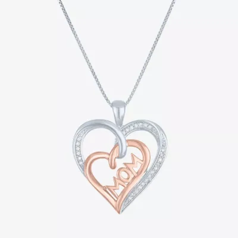 1/10 CT.T.W. Natural Diamond "MOM" Heart Necklace in Sterling SIlver and 14KT Rose Gold Over SIlver"
