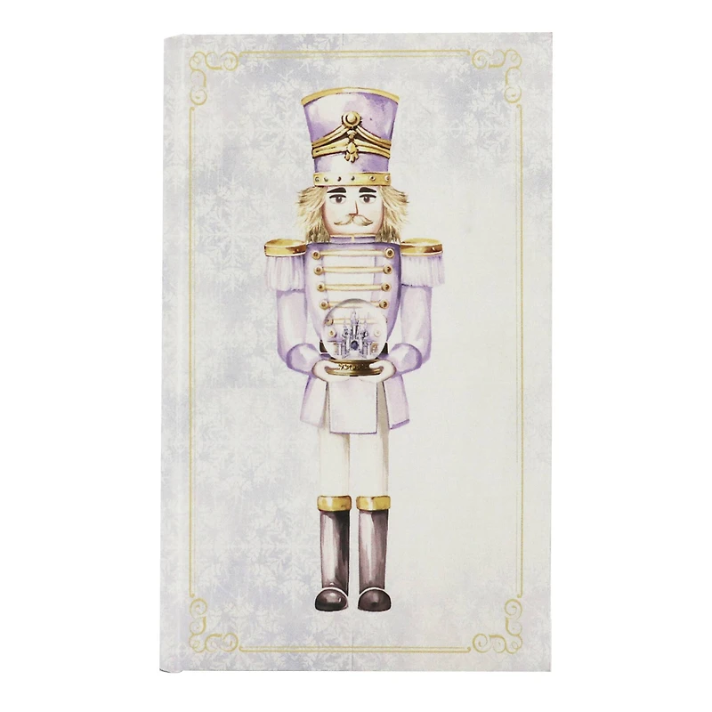 Celebrate a Frosted Fairytale Christmas with this lovely décor accent. This unique storage box is designed to look like a book, with "Merry Christmas" on the spine and a nutcracker holding a snow globe printed on the cover. Place it on a bookshelf or side table along with other tabletop decorations to create a whimsical and romantic vibe this holiday season.Details:Multicolor nutcracker print on white7" x 2.62" x 11.5" (17.78cm x 6.65cm x 29.21cm)MDF, polyester and ironComplies to TSCA Title VIFor indoor décor use only