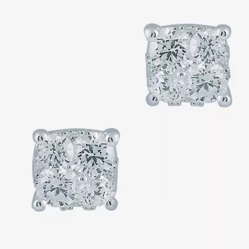 Add timeless brilliance to your look with these stud earrings, featuring 1/2 carat 16 natural white diamonds in prong setting. Made in lustrous sterling silver, the earrings provide a noticeable yet elegant presence. Their post back keeps the jewelry secure. Perfect for everyday wear or special occasions, these classic studs are a versatile and sophisticated accessory that will never go out of style.