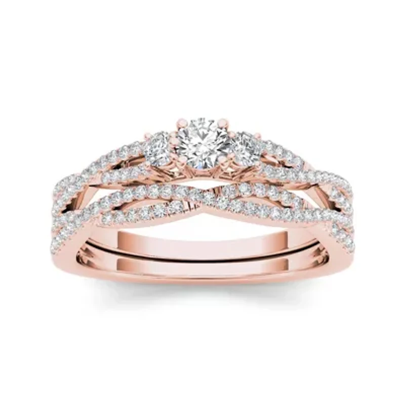 1/2 CT.T.W. Natural Diamond 14K Rose Gold Crossover Bridal Ring Set