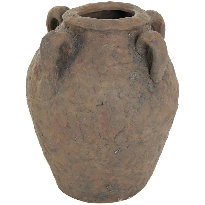 Designed with rugged beauty and an earthy charm, where natural simplicity, warmth, and organic materials create a wholesome atmosphere. Antique style vase is hand crafted from solid ceramic material for a durable and unique design. Rustic dark brown ceramic vase is handmade with a distressed textured finish, giving it an organic look. The textured surface adds dimension and brings a sense of the past to your natural home decor, for the perfect timeless accent piece. Style this brown rustic vase as a decorative piece on a coffee table or console, or fill it with fresh greenery for a fresh pop of color. It is designed with felt or rubber stoppers at the base that prevent scratching furniture and table tops, as well as sliding around. This item ships in one carton. Due to the handmade nature of this item, no two will be alike, there will be slight differences in shape, size, and color. This item ships fully assembled in one piece.