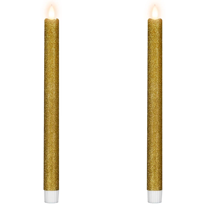 12" Gold Glittered Flameless Taper Candles, 2ct.