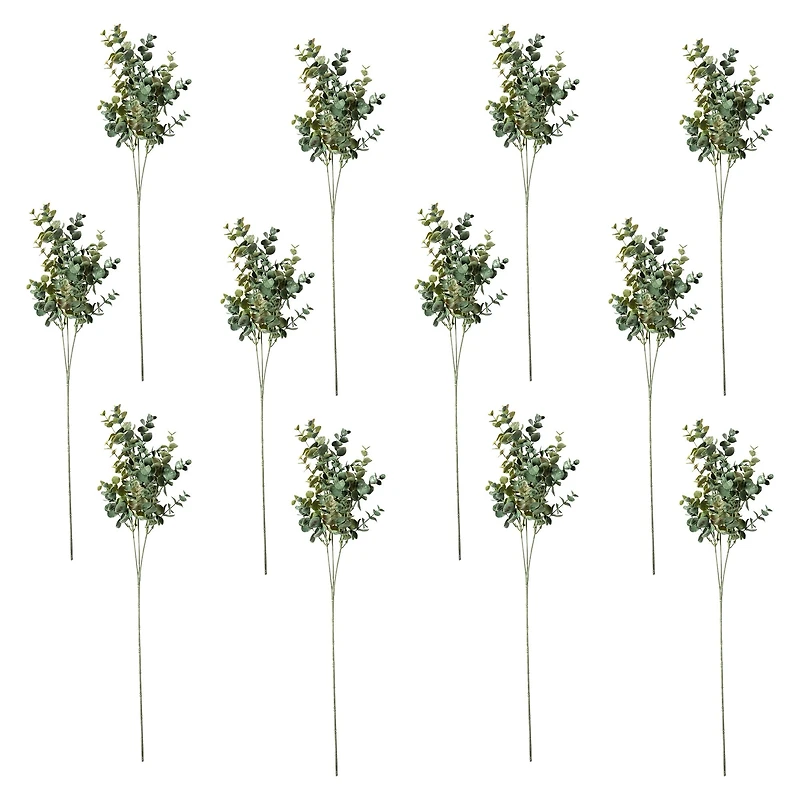 Create elaborate flower arrangements for your home using the eucalyptus stem in combination with pretty flowers and twigs. You can add a touch of freshness to your living space by placing this stem in a decorative vase.Details:Green25.5" (64.77 cm) height12 stemsPlastic and wire