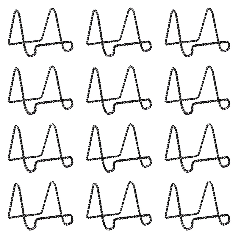 Display a favorite picture frame, book, decorative bowl, artwork and more with these wire easels. The classic design doesn't distract attention away from the object you wish to show off. Details:BlackAvailable in assorted sizes12 easelsIron wire