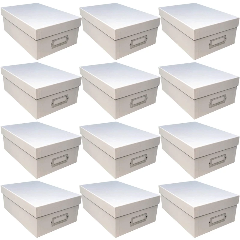 Preserve precious memorabilia in this memory box by Simply Tidy. You can arrange your pictures from birthday parties, weddings, anniversaries, baby showers and family vacations. This box can also be used to house your DVDs or CDs.Details: White 11.2" x 4.5" x 7.8" (28.5cm x 11.43cm x 19.8cm) box size12 boxesAcid free Holds over 1,000 photos (4" x 12", 10.16cm x 30.48cm) or 14 DVDs or 18 CDsMatte laminated art paper