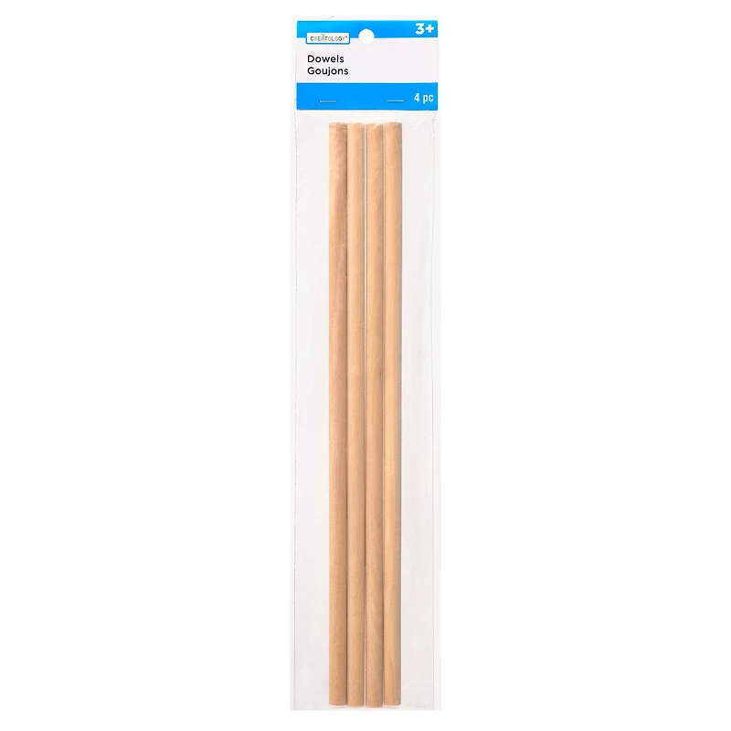 Ignite your kid's imagination with Creatology! Kids can use these wooden dowels for a variety of school, arts and crafts, or construction projects. They're great for building doll houses, making toy car paths, designing 3D structures and more. Details:Unfinished3/8" x 12" (0.9cm x 30.4cm) dowel size12 packs (4 dowels per pack, 48 total dowels)Birch woodFor ages 3 and up