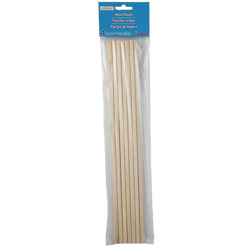 Ignite your kid's imagination with Creatology! Kids can use these wooden dowels for a variety of school, arts and crafts, or construction projects. They're great for building doll houses, making toy car paths, designing 3D structures and more. Details:Unfinished1/4" x 12" (0.6cm x 30.4cm) dowel size12 packs (7 dowels per pack, 84 total dowels)Birch woodFor ages 3 and up