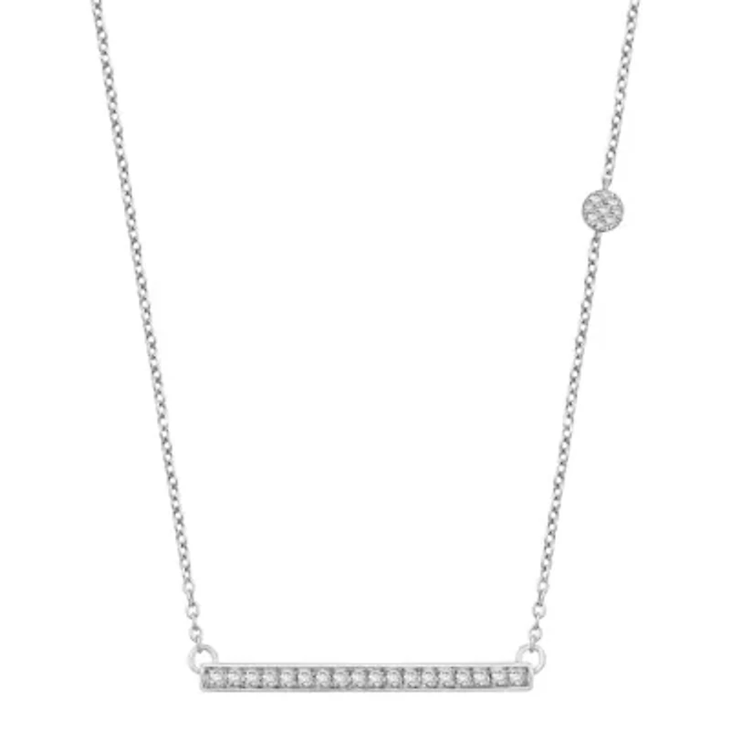 Product Details 1/3 Carat Natural Diamond Fashion Necklace Diamond Color Rating Code: I Diamond Clarity Rating Code: I2-I3 Diamond Shape: Round Set in 10k White gold Chain 17" Photo may have been enlarged and/or enhanced. 27 Color rating: I Clarity rating: I2-I3 Polished finish Prong setting Choking hazard IN Imported Product Specifications 17" 0.33 Material & Care Metal, Gold Clean with a soft bristle brush and warm soapy water.