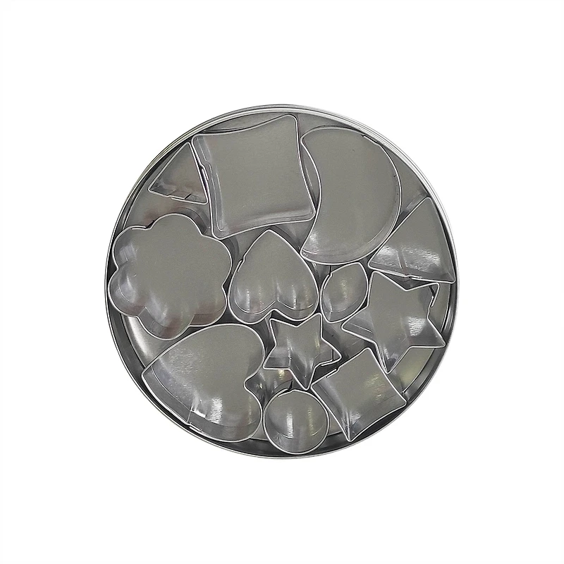 Turn your dessert creations into masterpieces using this fondant cutter set from Celebrate It. With 13 mini shapes, craft elaborately decorated cakes and other sweets that are sure to impress!Details:Silver colored4.7" x 4.7" x 0.9" (12cm x 12cm x 2.3cm) package sizeSet of 13 fondant cuttersStainless steel and tin