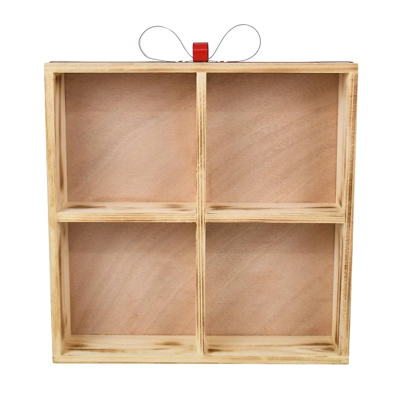Create a tiny display full of festive cheer with this wooden present cubby from Ashland. Whether left as is for a rustic look or embellished with paint, beads, glitter and more, this piece will make a wonderful shelf for depicting various Christmas Eve moments using miniature figurines in each of the compartments.Details:Natural woodgrain and red metal12" x 3" x 13.4" (30.5cm x 7.6cm x 34cm)Maximum loading capacity: 5 lb. (2.2 kg)Fir wood, plywood and ironComplies to TSCA Title VIRecommended for indoor use only