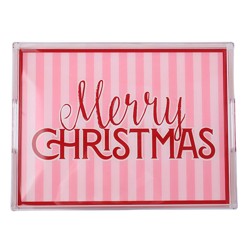 Bring festive charm to your home for the holidays with this plastic tray from Ashland. Featuring pink stripes and "Merry Christmas" in bright red, this piece is perfect to place on your entryway table to hold keys, mail and other important items.Details:Pink and red13.7" x 9.8" x 1.3" (34.8cm x 24.9cm x 3.3cm)Berry Jolly collectionNot for direct contact with foodPlasticFor indoor use