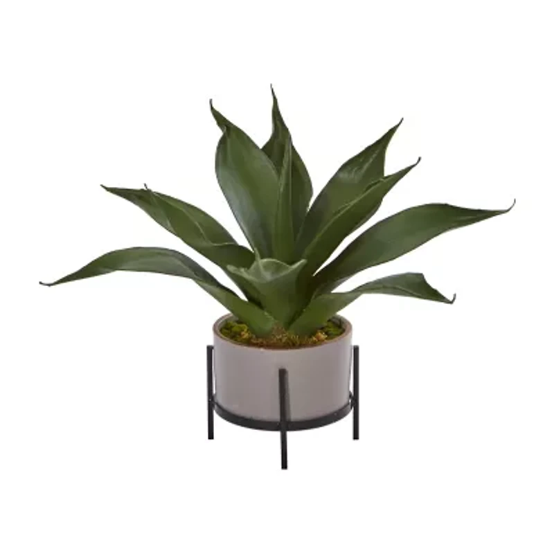 Situated in a decorative planter with a stand and topped with natural moss, the agave artificial succulent has stunning thick, lifelike green leaves that extend outward and drape elegantly. This 14-inch agave can make an excellent centerpiece for a sofa table, especially when paired with a lightly-colored table runner or placemat.