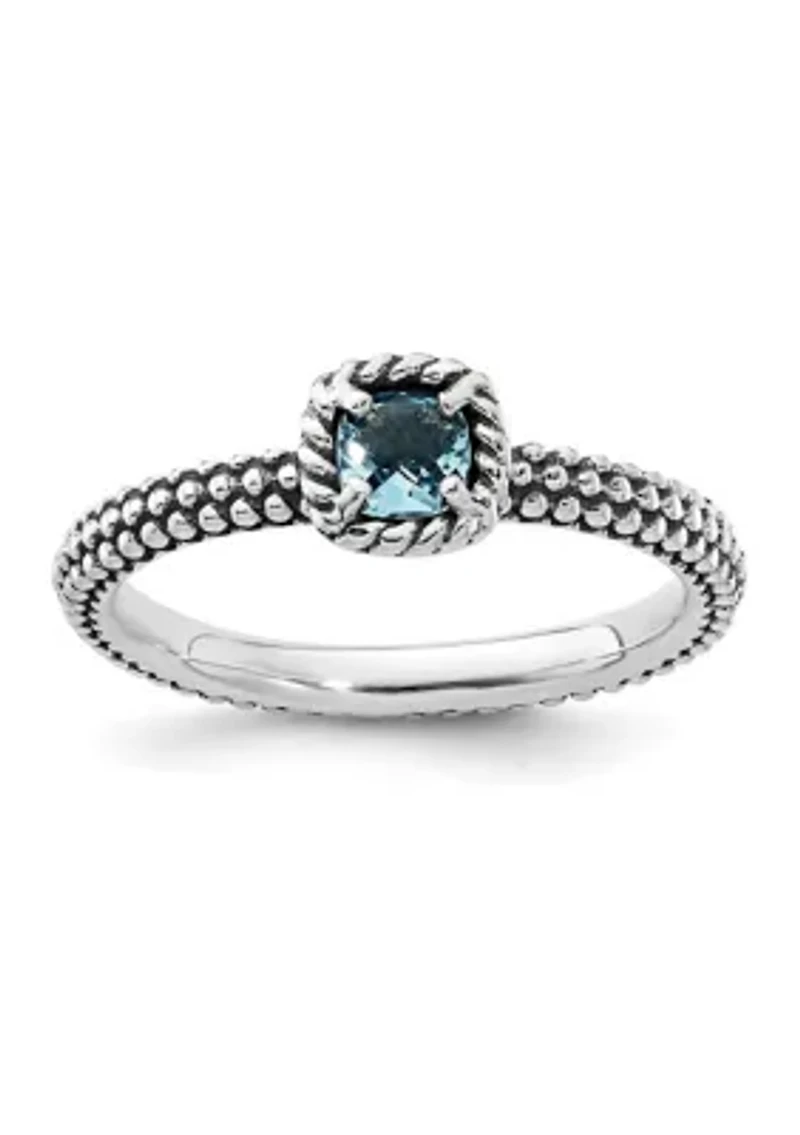 1/4 ct. t.w. Checker-cut Blue Topaz Antiqued Stackable Expressions Ring Sterling Silver