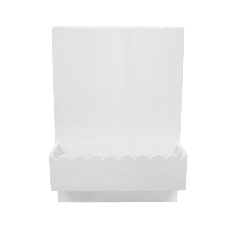 Create a welcome sign or personalized name sign with this easel from Ashland. This easel features a scallop edged container to place faux flowers along with a blank space to customize with paint or vinyl. Place this sign on a guest book table or entryway table to welcome your guests to your wedding, baby shower, event, or home. Details:White14" x 5.1" x 19.75" (35.5cm x 12.9cm x 50.1cm)Fir wood, plywood, iron, and hemp ropeFor indoor use