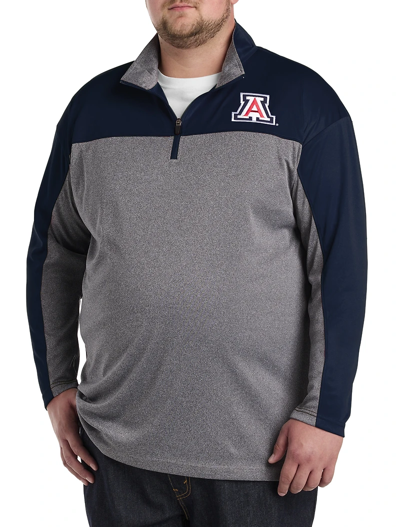 Show your support for your favorite college team in a stylish way. This colorblocked quarter-zip pullover is the perfect choice when you want to add a layer of warmth without bulk. Crafted in lightweight polyester, it allows for the ease and freedom to move without restriction so you can throw your arms up and celebrate your team's win! The school's logo is showcased at the left chest so you can proudly represent and share those special moments with fellow fans.