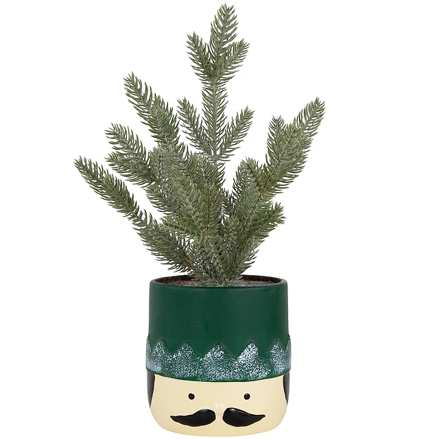 14.75" Unlit Lightly Frosted Mini Christmas Tree in Green Nutcracker Ceramic Pot