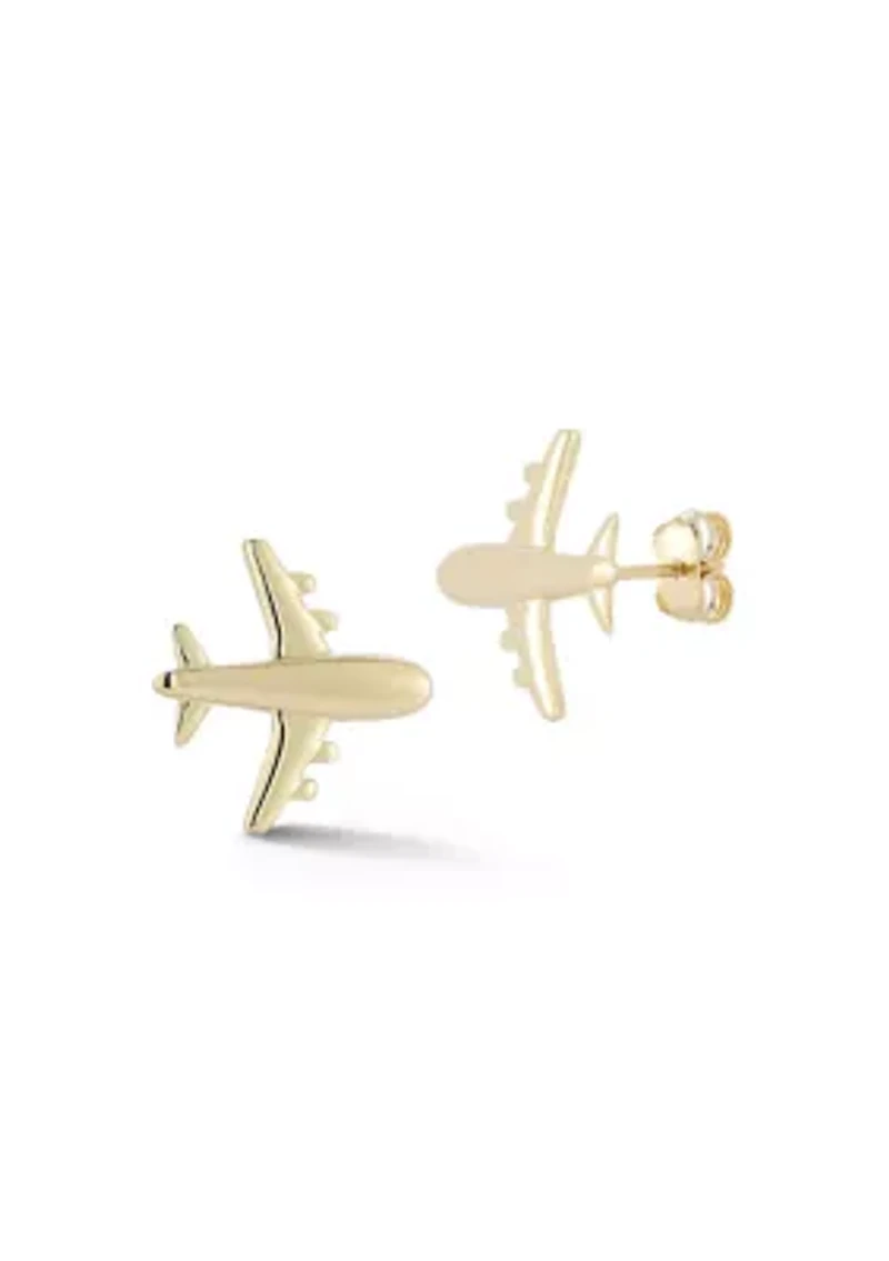 14K Gold Airplane Stud Earrings