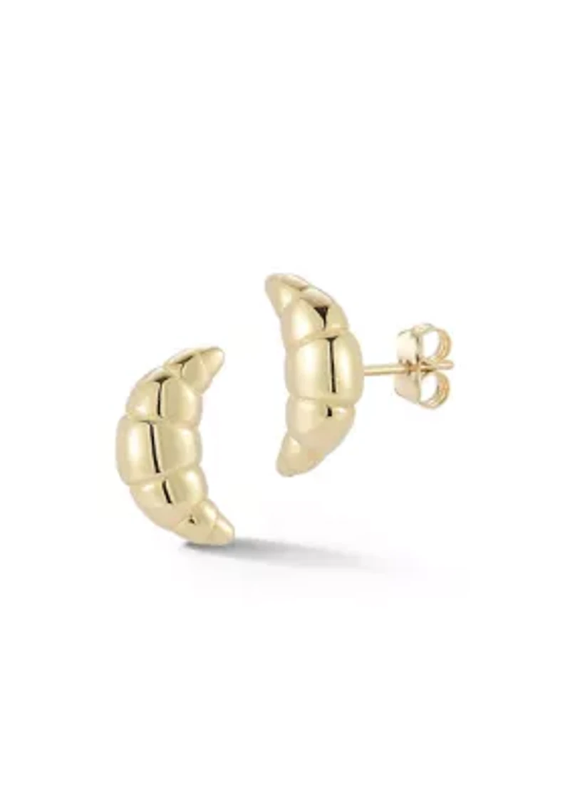 Playful, whimsical, and utterly charming, the Ember Fine Jewelry 14K Gold Croissant Stud Earrings are a delightful twist on classic studs. Crafted in solid 14K gold, each earring is shaped like a miniature croissant, capturing its iconic curved, flaky form in lustrous detail. Lightweight and comfortable for everyday wear, these studs add a touch of fun and personality while maintaining refined elegance. Perfect for food lovers, trendsetters, or anyone who enjoys a subtle statement, they make a unique addition to any fine jewelry collection. BASE METAL: 14K Gold. STUD DIMENSIONS: Approx. 0.2in x 0.4in. CLOSURE: Post back. 1 pair of 2 earrings Post back Polished finish Turkey Imported Product Specifications Approx. 0.2in x 0.4in stud dimensions. Material & Care Gold Use gold polishing cloth on gold items.
