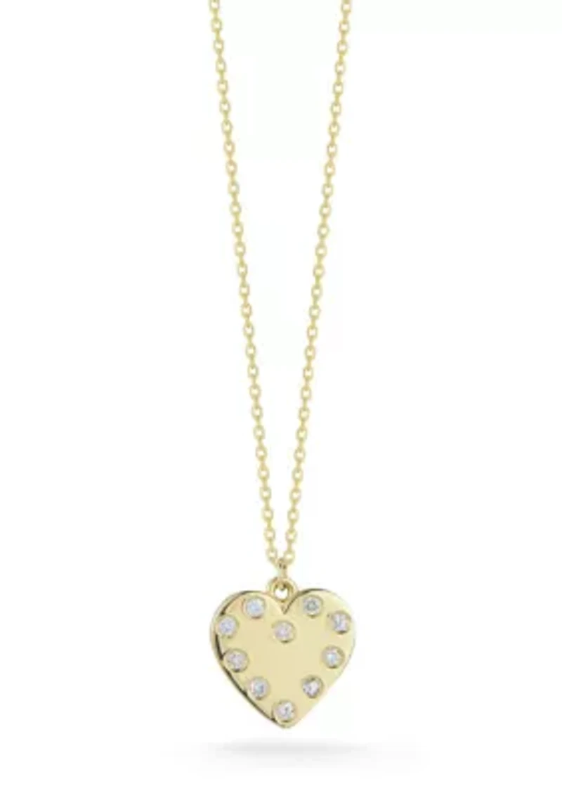 Crafted in luminous 14K gold, the Ember Fine Jewelry 14K Gold Diamond Heart Pendant Necklace features a polished heart accented with a sparkling diamond at its center. The gleaming gold and diamond catch the light beautifully, creating a subtle, elegant shimmer. Suspended from a delicate gold chain, this necklace offers a timeless expression of love, making it perfect for everyday wear or as a meaningful, stylish gift. BASE METAL: 14K Gold. CHAIN LENGTH: Approx. 16in + 1in extension. PENDANT DIMENSIONS: Approx. 0.45in x 0.45in. CLOSURE: Spring ring clasp. STONE TYPE: Natural Conflict-Free Diamonds. DIAMOND QUALITY: 1/10 CTW GH SI2. 1 necklace Spring ring clasp, 10 diamonds Color rating: H, G Clarity rating: SI2 Polished finish Turkey Imported Product Specifications Approx. 16in chain length + 1in extension, pendant approx. 0.45in x 0.45in Material & Care Gold Use gold polishing cloth on gold items.