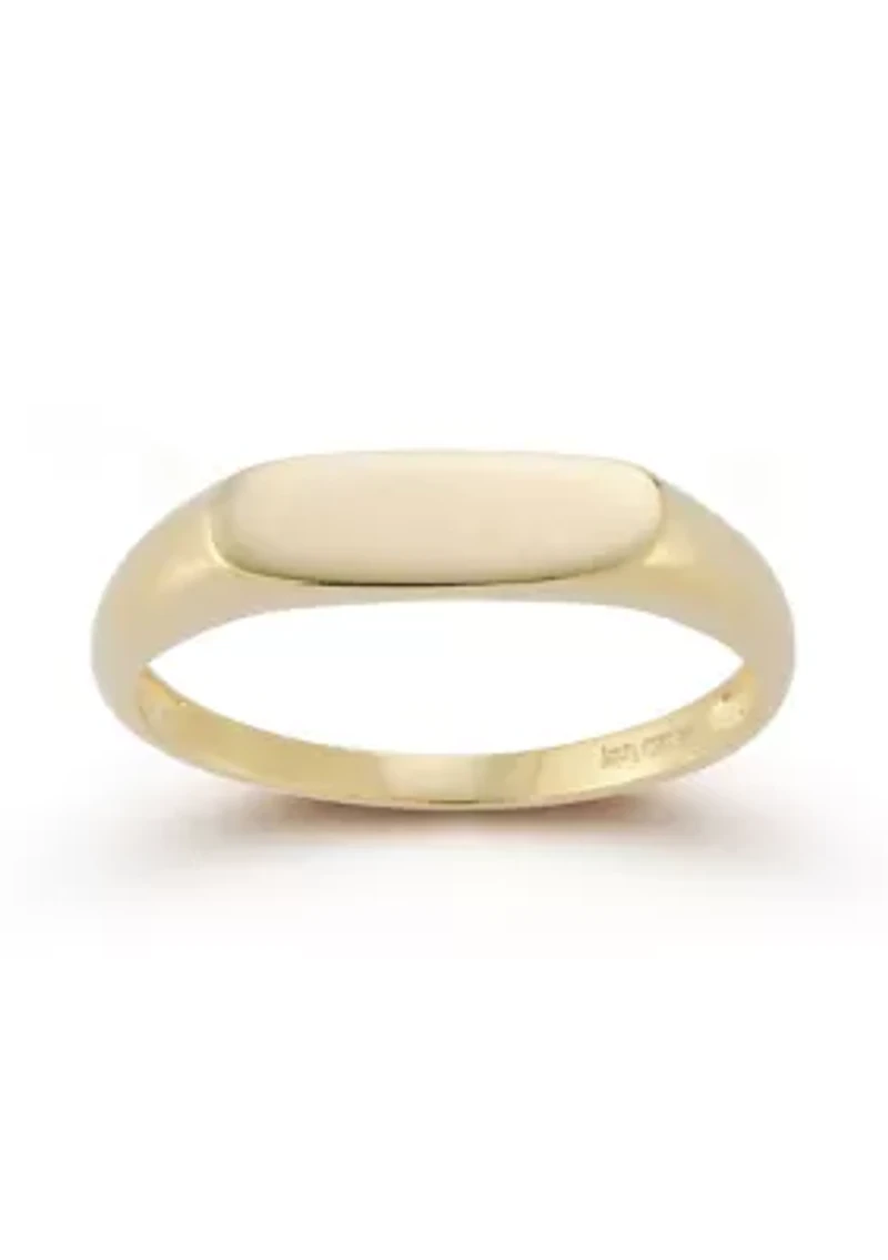 A modern take on classic style, the Ember Fine Jewelry 14K Gold Flattened Bar Signet Ring features a sleek, horizontal bar atop a polished 14K gold band. The smooth surface catches the light beautifully, creating a subtle, elegant shimmer. Minimalist yet bold, this ring offers a contemporary statement piece that is perfect for everyday wear or layering with other rings for a refined, stylish look. BASE METAL: 14K Gold. BAND WIDTH: From approx. 0.05in to 0.15in. AVAILABLE SIZES: 6,7,8. 1 ring Slip on Polished finish Turkey Imported Product Specifications Approx. 0.05in to 0.15in band width Material & Care Gold Use gold polishing cloth on gold items.