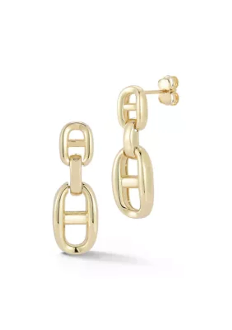 Bold and timeless, these drop earrings are crafted in radiant 14K gold and feature the iconic mariner link design for a look rooted in classic craftsmanship. The polished links create graceful movement and a striking silhouette, catching the light with every turn. Designed to feel lightweight while delivering visual impact, they offer comfortable wear from day to night. Effortlessly versatile, these earrings add a refined edge to everyday styling and a confident statement to evening looks, blending enduring design with modern elegance in a beautifully balanced piece. THESE EARRINGS ARE SOLD AS A PAIR. BASE METAL: 925 Sterling Silver. EARRING DROP: Approx. 0.9in. CLOSURE: Post back. 1 pair of 2 earrings Post back Polished finish Turkey Imported Product Specifications Approx. 0.9in earring drop Material & Care Gold Use gold polishing cloth on gold items.