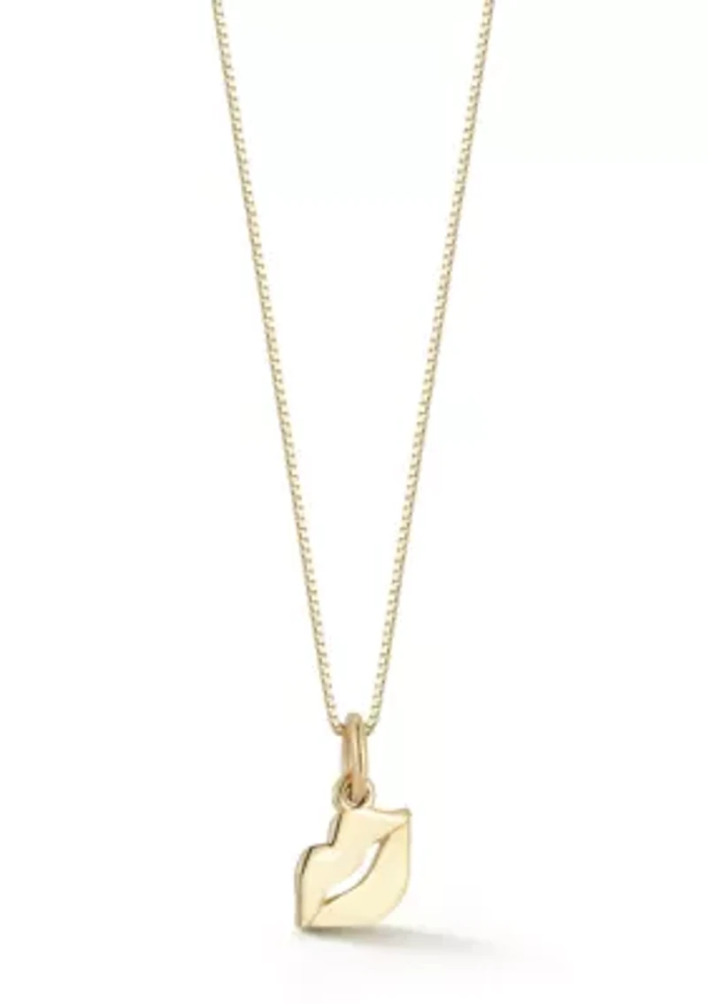 14K Gold Mini Lips Pendant Necklace, Made in Italy in Chattanooga, TN