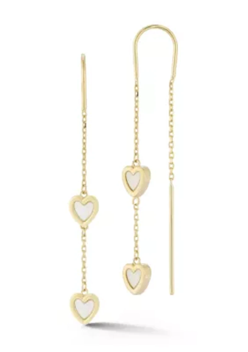 14K Gold Mother of Pearl Double Heart Threader Earrings