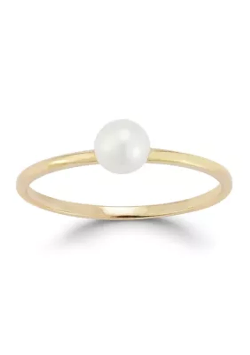 A timeless classic, the Ember Fine Jewelry 14K Gold Pearl Solitaire Ring, Made in Italy, features a single lustrous pearl set on a polished 14K gold band. The smooth, reflective surfaces highlight the pearl’s natural iridescence, creating a soft, elegant shimmer. Sophisticated and versatile, this ring offers understated beauty perfect for everyday wear or as a refined, stylish gift. BASE METAL: 14K Gold. BAND WIDTH: From approx. 0.05in to 0.25in. AVAILABLE SIZES: 6,7,8. STONE TYPE: Cultured Freshwater Pearls. PEARL DIMENSIONS: Approx. 4.5mm. 1 ring Slip on Polished finish Italy Imported Product Specifications Approx. 0.05in band width, pearl approx. 4.5mm Material & Care Gold Use gold polishing cloth on gold items.