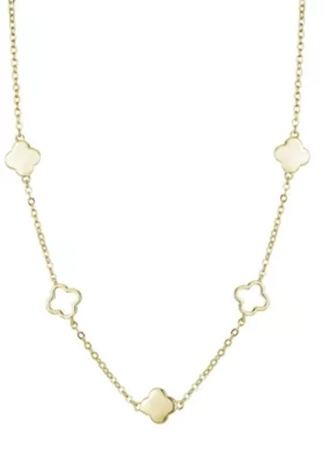 Tarnish Resistant 14k Yellow Gold Plated 5-Leaf Clover Station Bracelet
