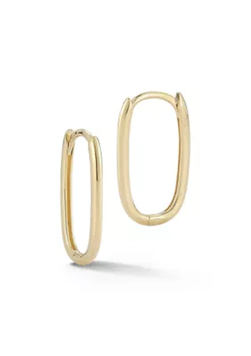14K Gold Polished Oval Huggie Hoop Earrings