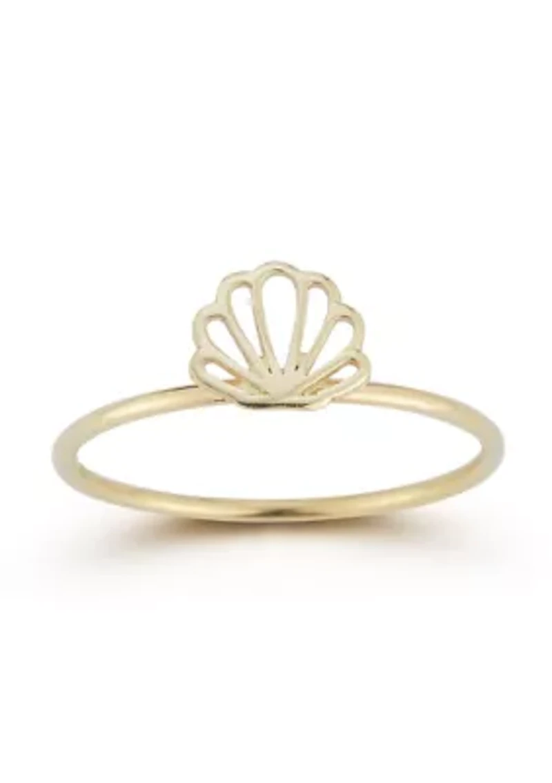 A breezy, modern twist on a classic motif, the Ember Fine Jewelry 14K Gold Seashell Cocktail Ring features an openwork seashell design crafted in polished 14K gold. The airy, sculpted lines catch the light beautifully, creating a subtle, elegant shimmer. Bold yet refined, this ring makes a standout statement for special occasions or adds a touch of coastal charm to everyday wear. BASE METAL: 14K Gold. BAND WIDTH: Approx. 0.05in to 0.25in. AVAILABLE SIZES: 6,7,8. 1 ring Slip on Polished finish Turkey Imported Product Specifications Approx. 0.05in to 0.25in band width Material & Care Gold Use gold polishing cloth on gold items.
