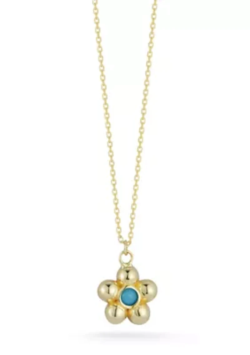 14K Gold Turquoise Flower Pendant Necklace
