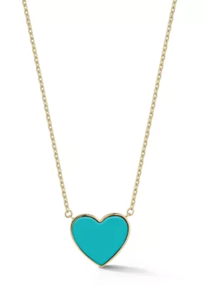 14K Gold Turquoise Heart Pendant Necklace