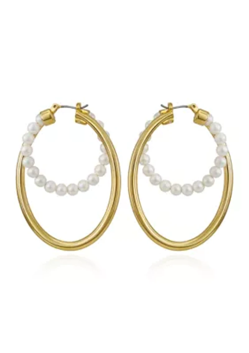 Timeless elegance meets modern design in these Vince Camuto open circle earrings. Finished in radiant 14K gold-tone metal, the silhouette is accented with luminous white pearls for a sophisticated touch. The clean, circular shape offers versatile styling that pairs effortlessly with any wardrobe. Click top closure Imported Product Specifications 20" L Material & Care Gold plated metal Clean with a soft cloth