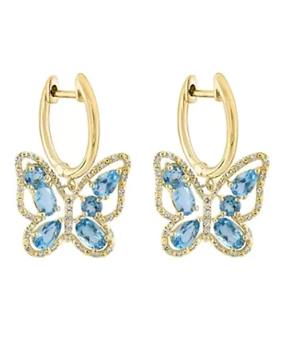 14K Yellow Gold Diamond And Swiss Blue Topaz Butterfly Earring